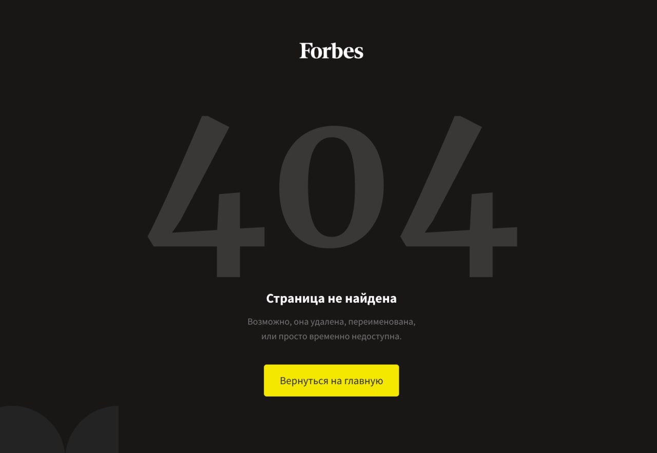 С сайта Forbes и из телеграм-канала Mash исчезли новости о том, что сбой в работе банков связан с блокировками Роскомнадзора. На сайте Forbes по ссылке на текст стоит надпись: «404. Страница не найдена».