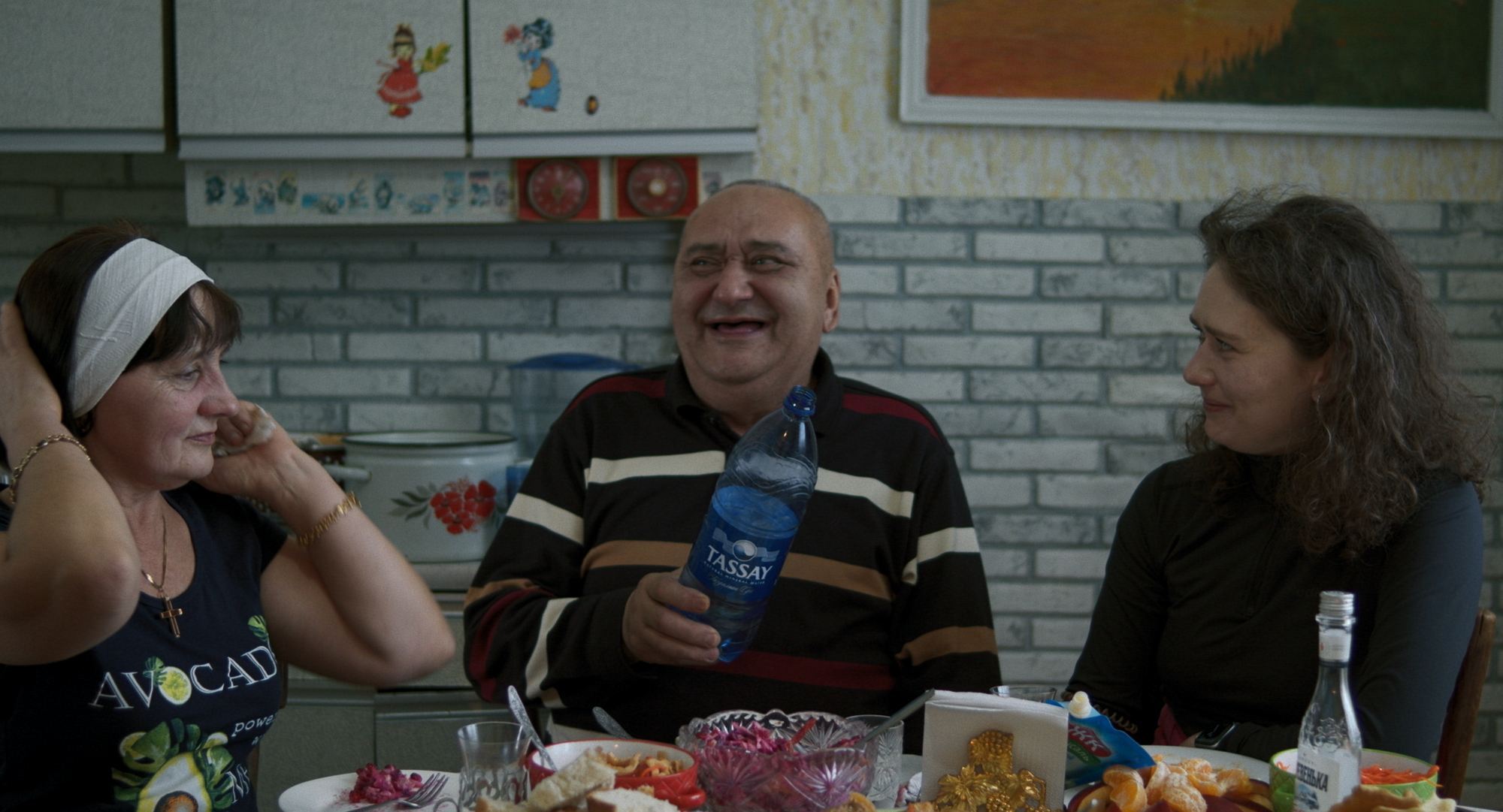 На второй день в гостях у соседки мы старались снимать со стороны, но потом, как всегда бывает, нас стали звать к столу: «Ну, что вы там стоите? Идите сюда». И мы решили, что нам надо взаимодействовать с героями, быть внутри, ухищряясь все это снимать на две камеры. В большинстве случаев это получалось, но, естественно, где-то мы попадали в кадр и потом на монтаже жутко себя ругали. Но без этого неизвестно, получилось ли бы у всех расслабиться, а так о камере довольно быстро забыли, и начала происходить жизнь.