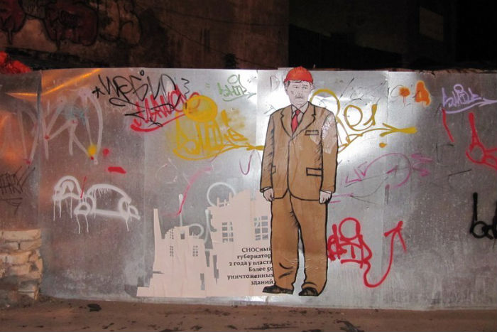 Радикальные градозащитники нарисовали Полтавченко в каске