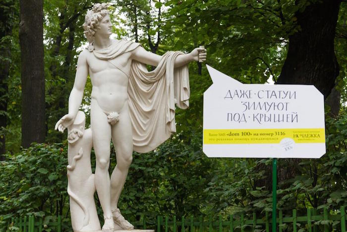 Конечно, стоит отметить, что различные городские и государственные организации с большей охотой поддерживают социальные кампании, принимают участие, помогают. Например, без поддержки Русского музея проект «Мраморные люди против каменных сердец» для «Ночлежки» ни за что бы не состоялся. А представить себе бренд, скажем, косметики, которому отдают под активность главную аллею Летнего сада, просто невозможно.
