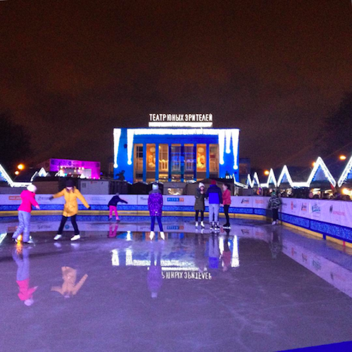 Перед ТЮЗом имени Брянцева, посреди городской новогодней ярмарки, работает открытый каток площадью 40 на 20 метров. Площадка предназначена для совместного катания взрослых и детей, а сеанс длится 100 минут. На каток можно прийти со своими коньками или взять их напрокат. Новичкам помогают дежурные волонтеры. В новогоднюю ночь площадка будет работать и ночью, а студенты смогут кататься бесплатно с 20:00 31 декабря и до 03:00 1 января.