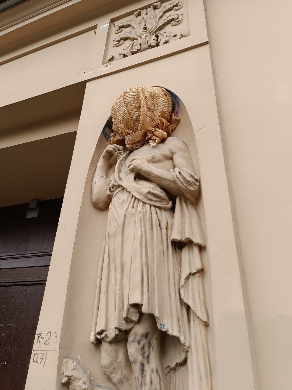 Тогда памятник тоже не реставрировали, а в 2022 году голову отправили на хранение в Петербургский центр культурного наследия. В КГИОП сообщили, что судьбу экспоната определят, когда будут известны сроки капитального ремонта фасадов зданий, — скульптуре могут вернуть изначальную голову или заменить копией.