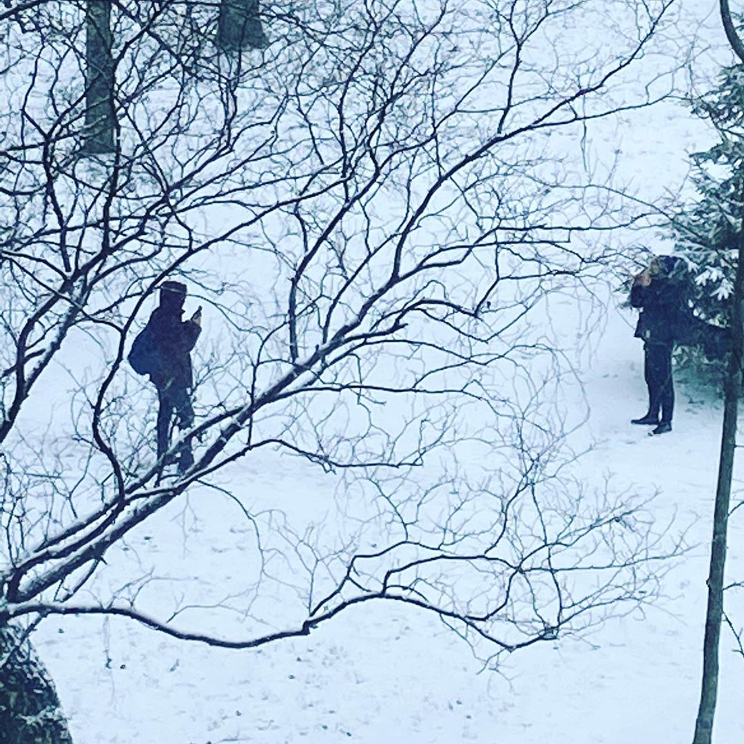 «Сегодня выпал снег. Причем нормально выпал. Я отвез жену на работу и обратно. А люди, которым, скорее всего, никуда не нужно, гуляют и фоткаются! Или сидите дома, или 3,14здуйте на работу! Хватит слоняться!». Фото: Albert Agliulin