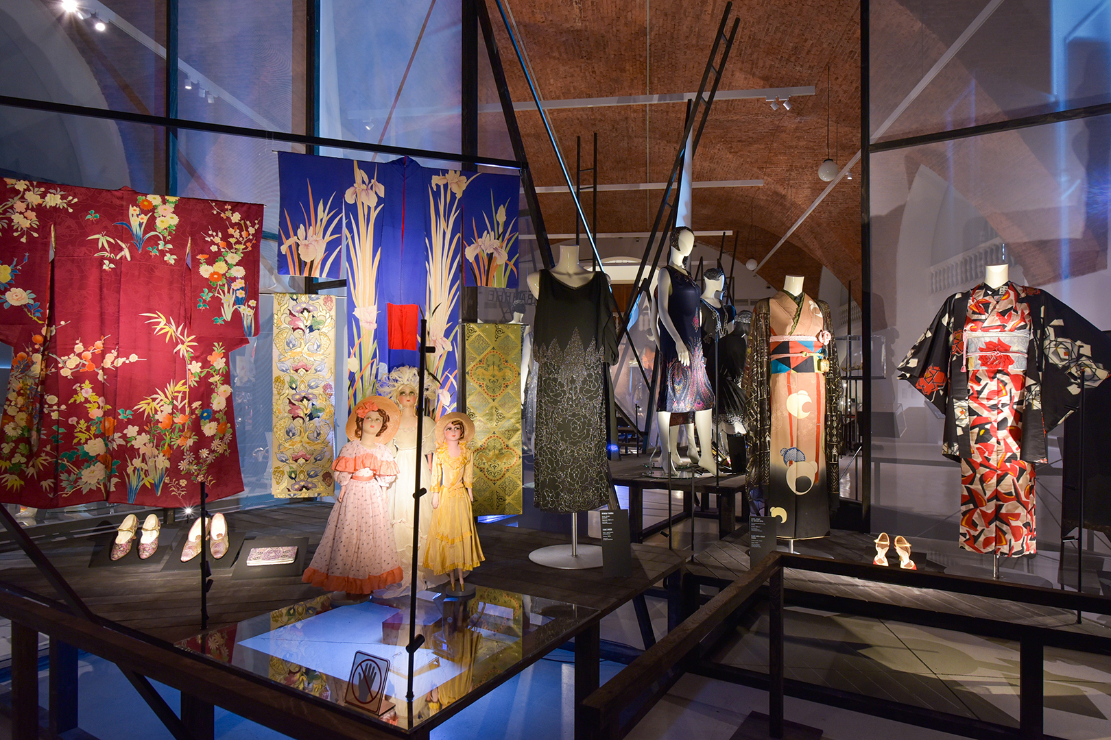 Зрителям представили больше 400 экспонатов: платья Поля Пуаре, обувь фирмы Hellstern & Sons и другие работы модельеров первой половины XX века. Их дополнили живописью и графикой художников того же периода: от Анри Матисса до Эрте.