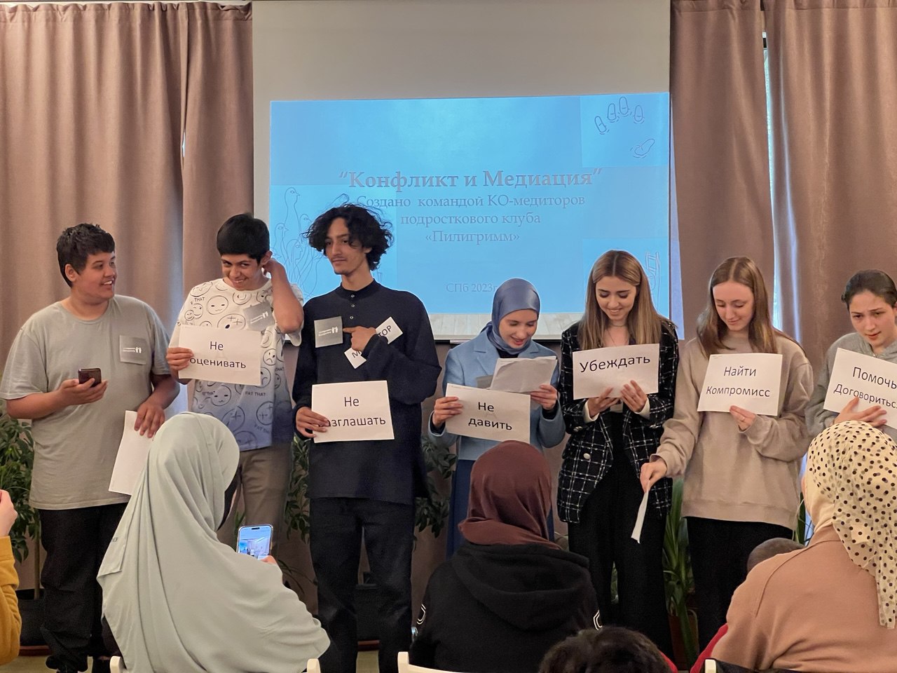 Клуб был создан на базе духовного управления мусульман Петербурга. Мы договорились, что будем проводить для ребят занятия раз в неделю, по очереди. Так Рузалия Азатовна, например, начала проводить медиации для разборов кейсов по разрешению конфликтов. А через год ребята сами стали пробовать себя в роли медиаторов. То есть они приходили на встречи не просто как одна из сторон конфликта с просьбой помочь его разрешить, а пытались сами со стороны понаблюдать и помочь.