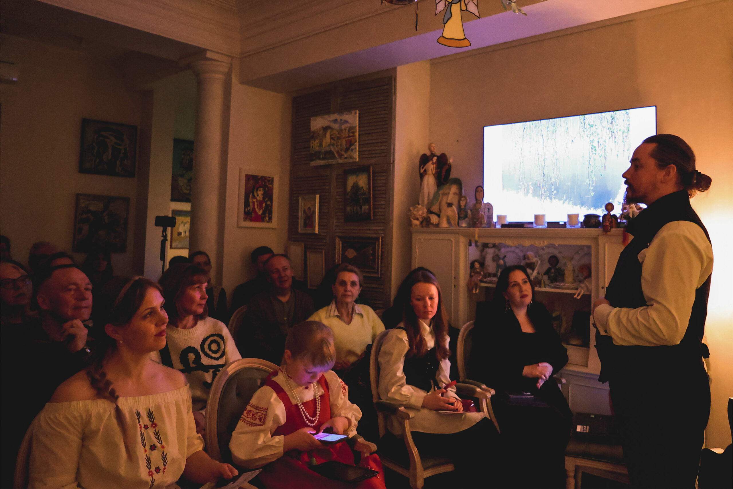 «Алексей Рыбаков, молодой пианист из Петербурга, уехавший в Финляндию 2022-м, уже несколько лет проводит свои салоны в особняках и имениях. На разных площадках, где люди могут прийти, отдохнуть, послушать музыку, обменяться чем-то, выпить чашечку кофе, съесть что-нибудь вкусное. Вот такая история. Мы решили сделать такую программу в Петербурге. Планировали финский салон с прошлого года. И вот настал день премьеры», — пояснила Миловидова.
