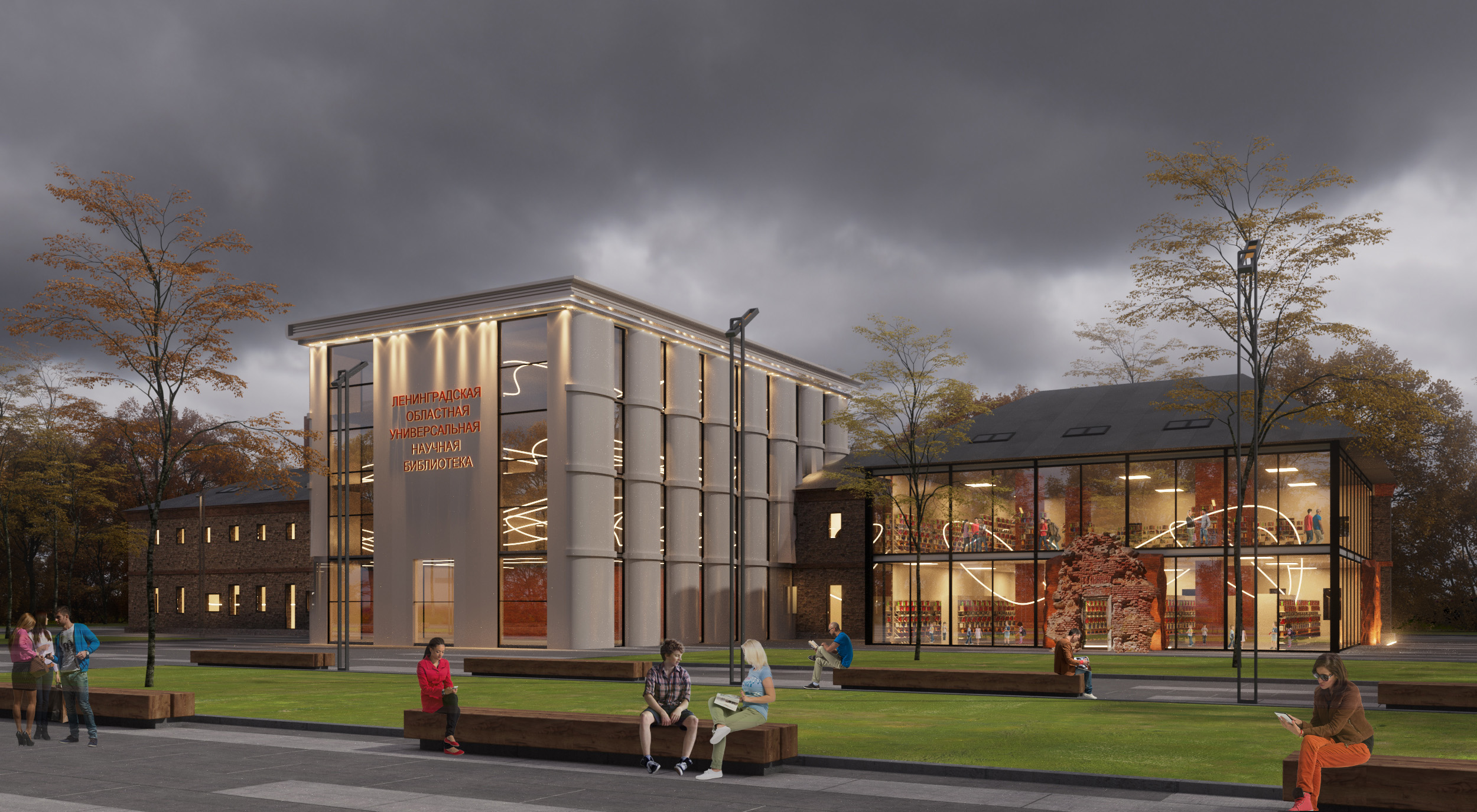 Согласно концепции, мы предлагаем сохранить и укрепить все существующие исторические конструкции. А учитывая пожелание разместить там огромные [библиотечные] фонды — более двух миллионов томов — хотим сделать пристройку со стороны второго фасада, так как реставрируемое здание под такие объемы не рассчитано.