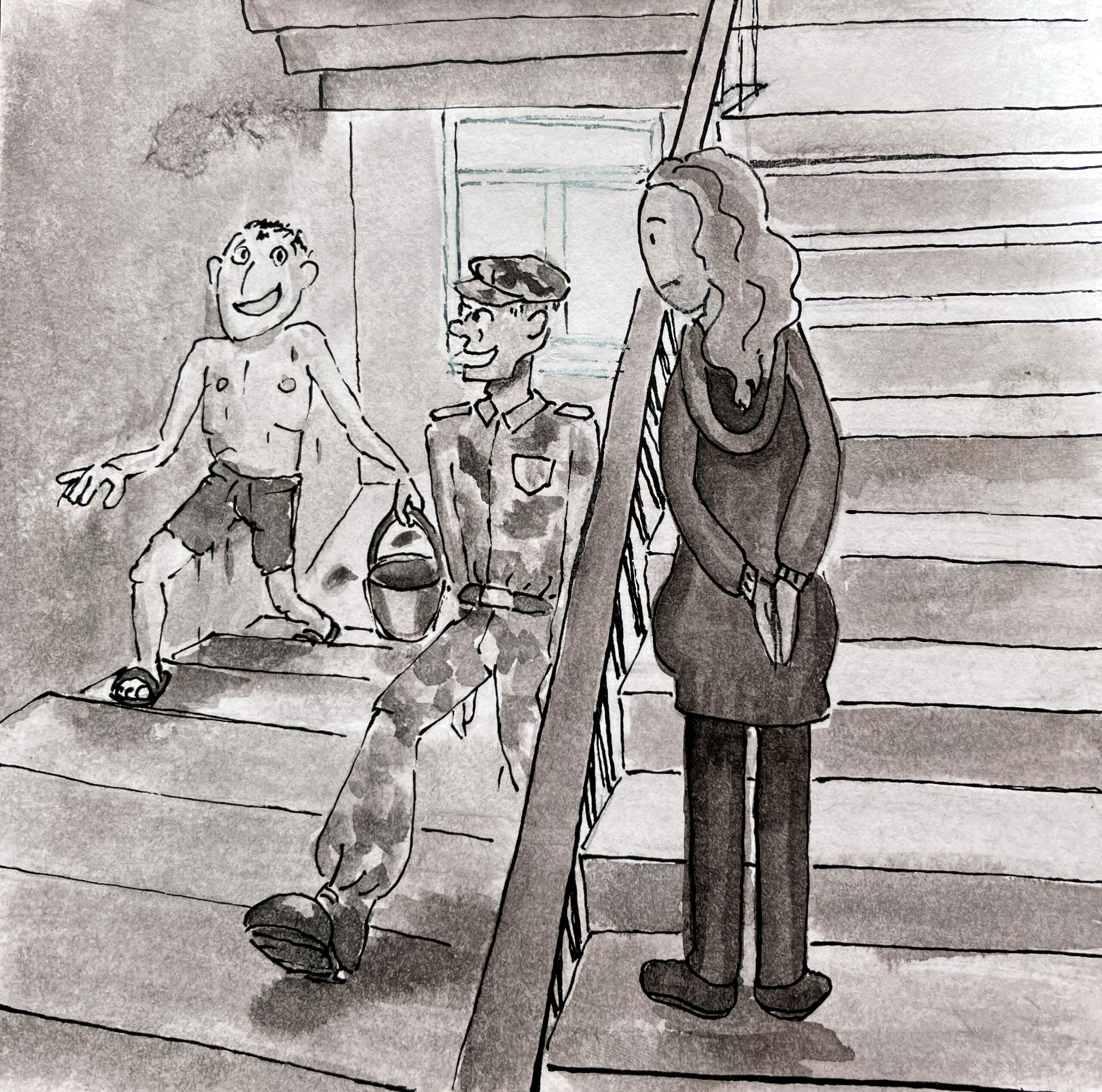 Мы регулярно встречаем этих мужчин в коридорах и в общем-то можем оказаться жертвами их агрессии. Например, однажды один такой гражданин стал угрожать мне, что как-нибудь прокатит меня в багажнике. (Публично об истории мы говорить не стали — в тот момент на кону стояли мои обследования в СИЗО. Инцидент замяли, но разъяснительную беседу с джентльменом все же провели. — примечание Саши от 2025 года). Мужчины здесь вообще время от времени ходят по коридорам как дома. И да, замечаний им никто не делает.