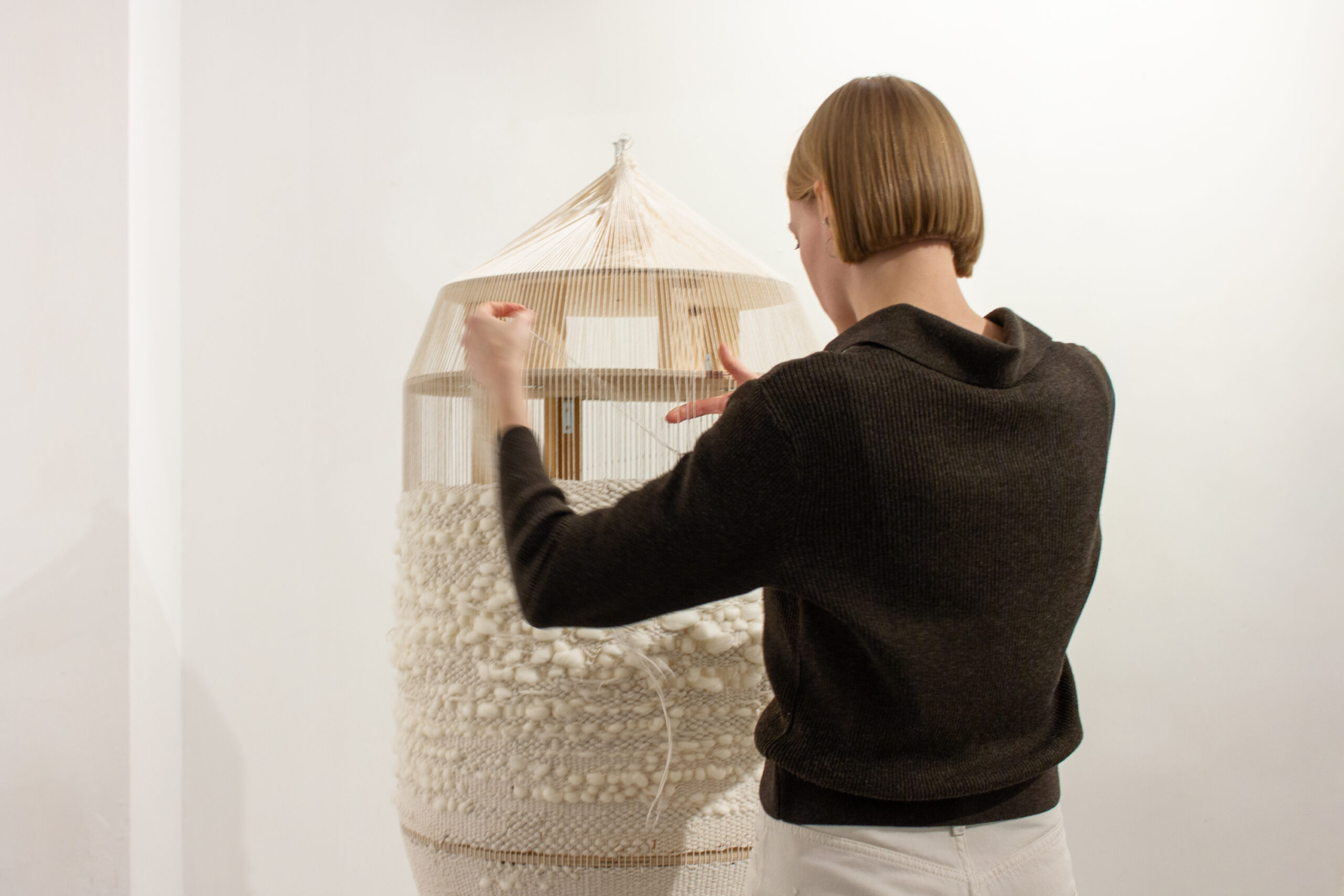 Наталья Семенова — современная художница, работающая с текстилем и ткачеством. В своих проектах она создает объекты и инсталляции в смешанных техниках, обращаясь к темам памяти, трансформации и ожидания перемен. В рамках резиденции она разработала и представила работу Moth That Never Comes — масштабную текстильную инсталляцию, отсылающую к форме кокона, увеличенного до человеческого размера.