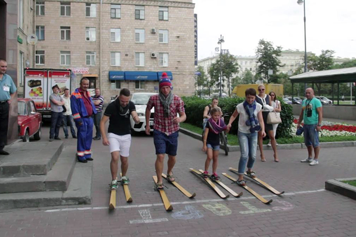 Акция «Наш ответ лету» с биатлонистами Дмитрием Малышко и Алексеем Слеповым. Фото: biathlonspb.ru