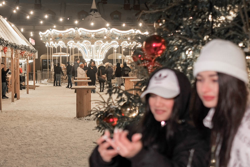 Зимний сезон во дворе комплекса «Никольские ряды» стартовал 1 декабря: в пространстве открыли не только снежную горку и венецианскую карусель, но и зимний маркет с подарками и сувенирами. Там продают детские книги, свечи и ароматы для дома, авторские украшения, пряники и мед, одежду из натуральных материалов от локальных российских дизайнеров. В некоторых киосках готовят согревающие напитки и еду: чешские трдельники, японские десерты моти и стритфуд из морепродуктов.