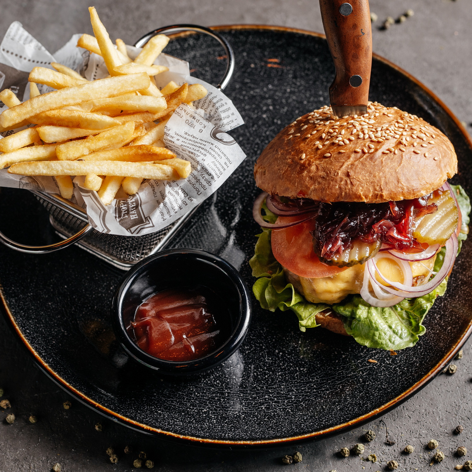 590 ₽ — жареный камамбер с фруктово-ягодным соусом