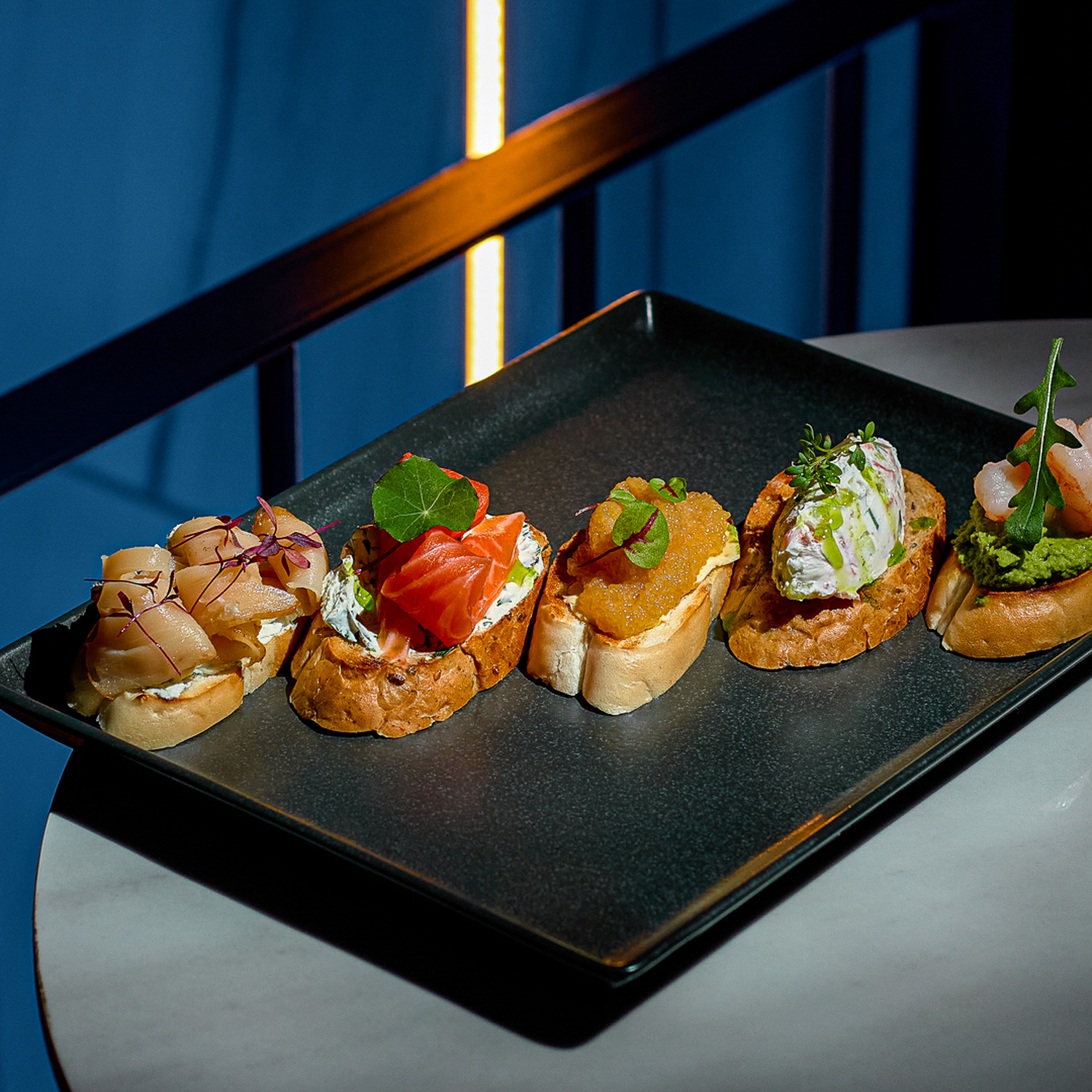 550 ₽ — севиче с креветками, авокадо и копченым сливочным кремом