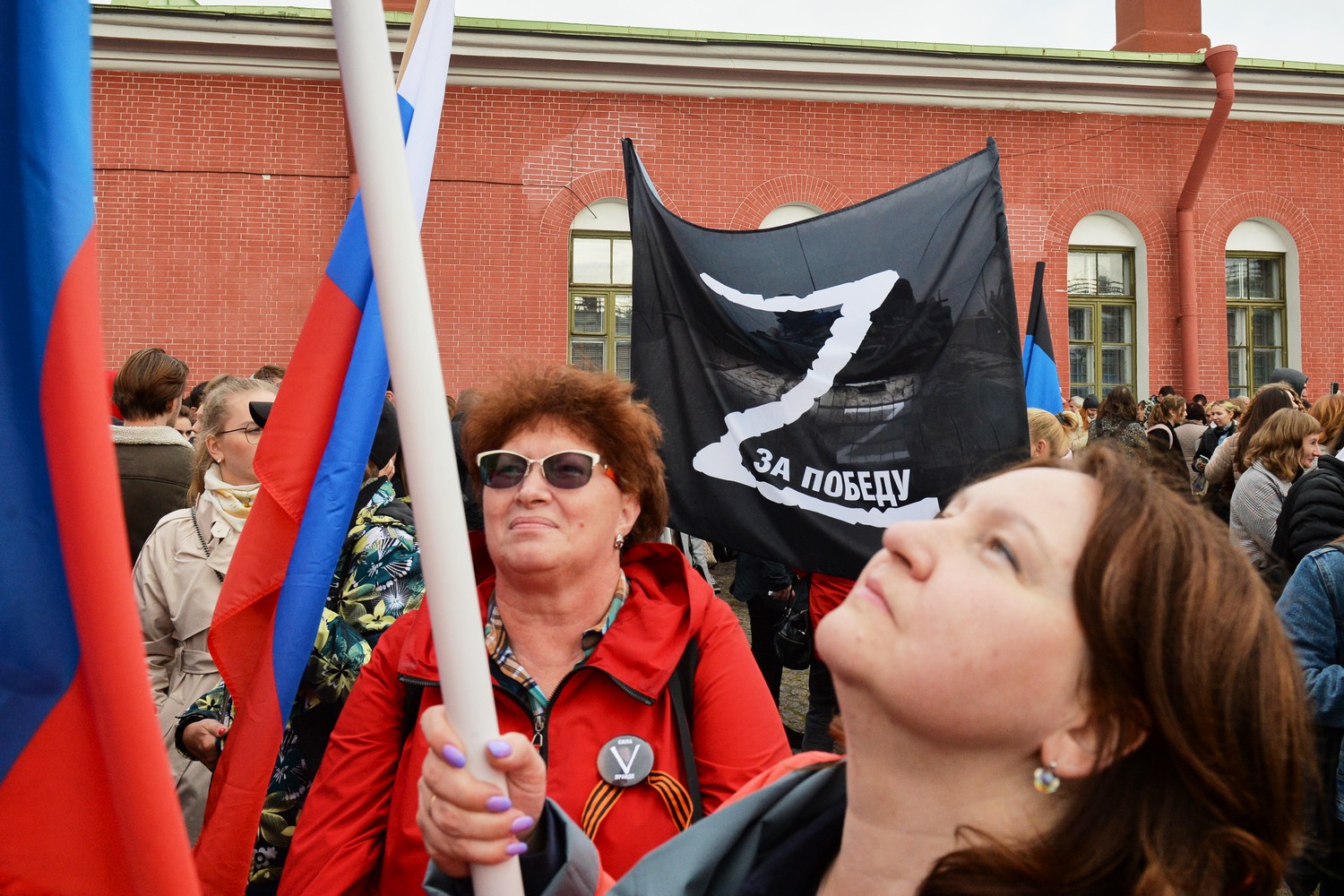 Митинг в поддержку «референдумов» в Донбассе, Херсонской и Запорожской областях у Петропавловской крепости, 23 сентября 2022 года. Фото: «Бумага»