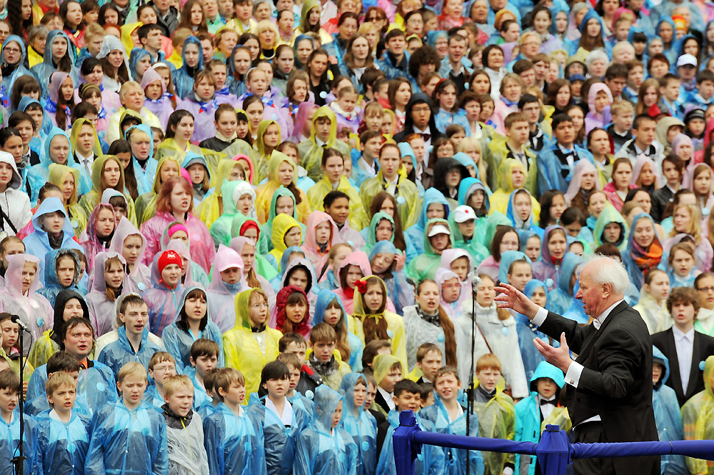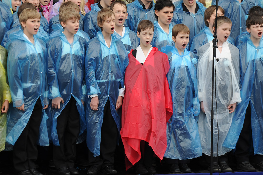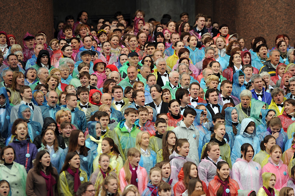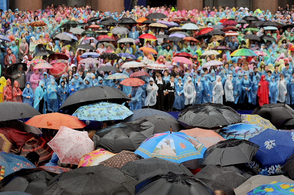 Четырехтысячный хор под зонтиками спел у Исаакиевского собора