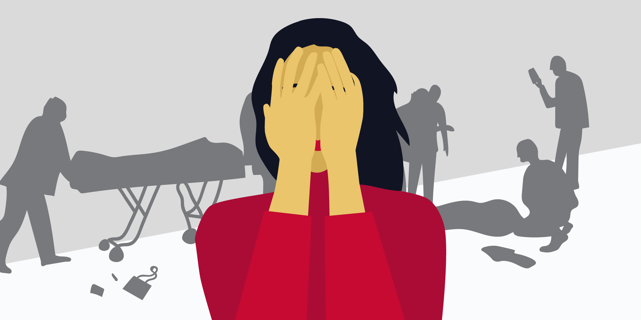 Седой мужчина в очках «молча помог подняться» девушке, вывел на улицу. Эвелина вспоминает, что просила связаться с родителями, чтобы сказать, что жива, но у людей вокруг не было на это времени.