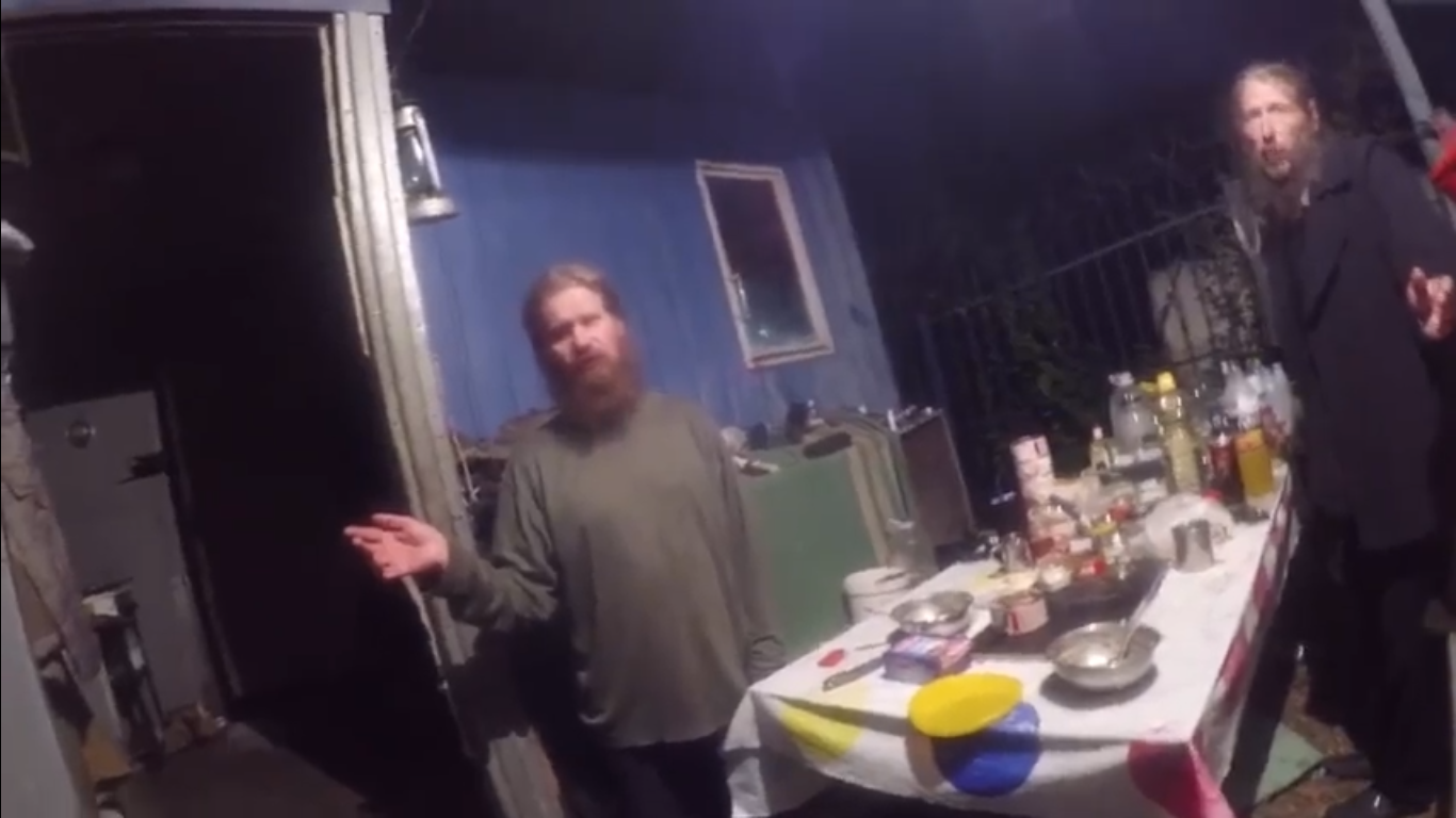 Мужчины, встретившие Сергея под вышкой радиосвязи. Скриншот из видеоблога Boring Travel #8