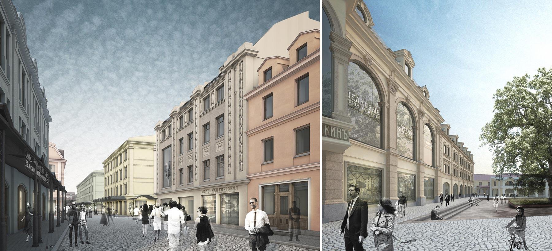 Концепцию ревитализации торгового комплекса это архитектурное бюро разработало в 2015 году. Проект предполагает сохранение внешнего облика архитектурного ансамбля, минимальные внутренние перепланировки и приспособление части корпусов в жилые дома.