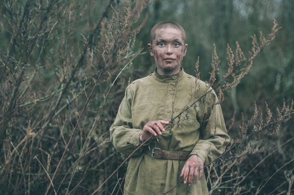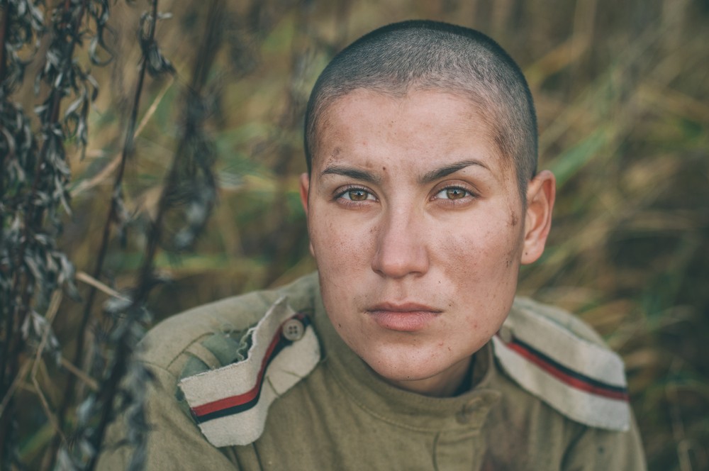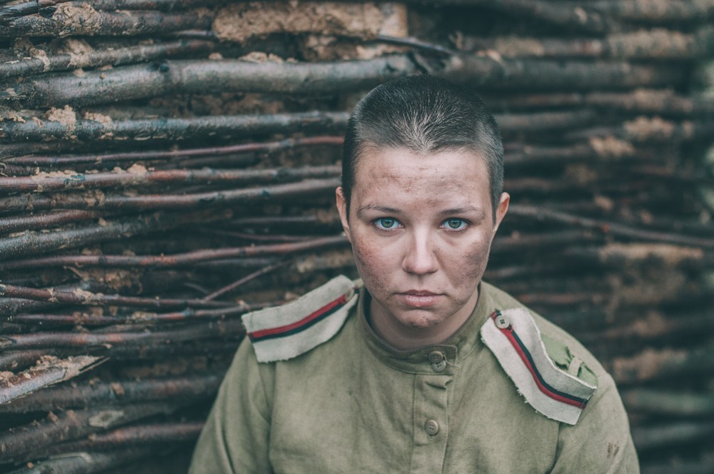 Кассир, певица, школьница, домохозяйка, директор строительной фирмы — сотни женщин от 16 до 60 лет поехали под Псков, чтобы побриться налысо, надеть одинаковые военные шинели, тяжелые кирзовые сапоги и ежедневно по несколько часов бежать с винтовками по грязи. Осенью 2013 года проходили съемки массовки фильма под рабочим названием «Батальон смерти» о Первой мировой, выход которого намечен на август. Что вынудило их на несколько недель оказаться в роли солдата, поменять комфорт на полувоенный распорядок и как съемки стали настоящей армией — «Бумага» публикует портретный проект Оксаны Даниловой об участницах массовки «Батальона смерти».