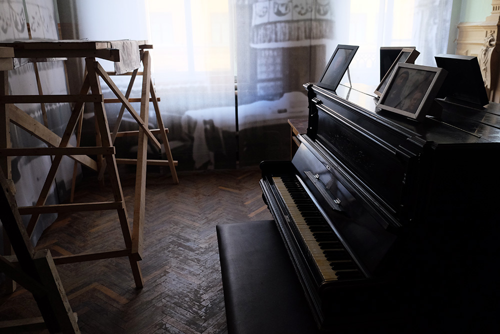 «Комната родителей напоминает о семье Бродского: там выставлены фотографии с дней рождения, и после отъезда поэта всегда собирались какие-то люди. Мы также поставили два пианино спина к спине — в течение дня будут играть джаз мужчина и женщина, такая вот перекличка».