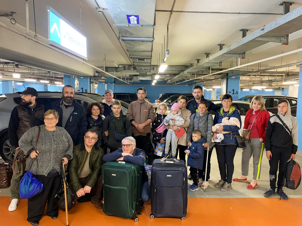 Две семьи из Мариуополя и Григорий Михнов-Вайтенко, который помогал им сбором средств. Фото: Facebook