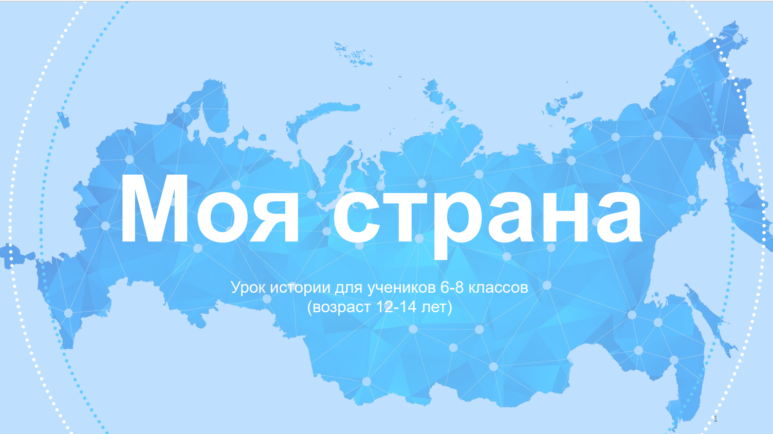 Обе презентации — для учеников 6–8 и 9–11 классов — называются «Моя страна. Уроки истории». В них 27 и 32 слайда соответственно.