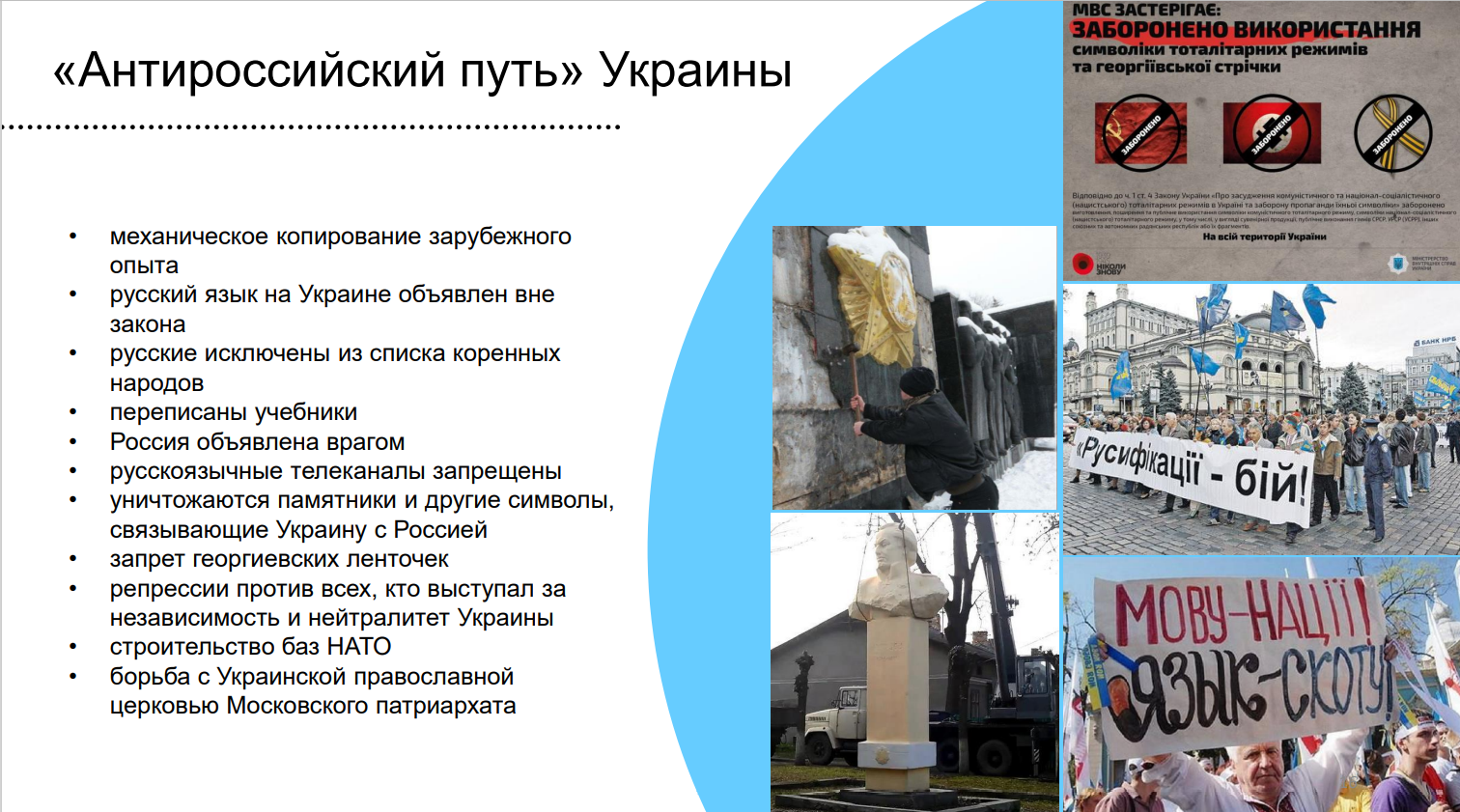 После этого школьникам рассказывают об «антироссийском пути» Украины.