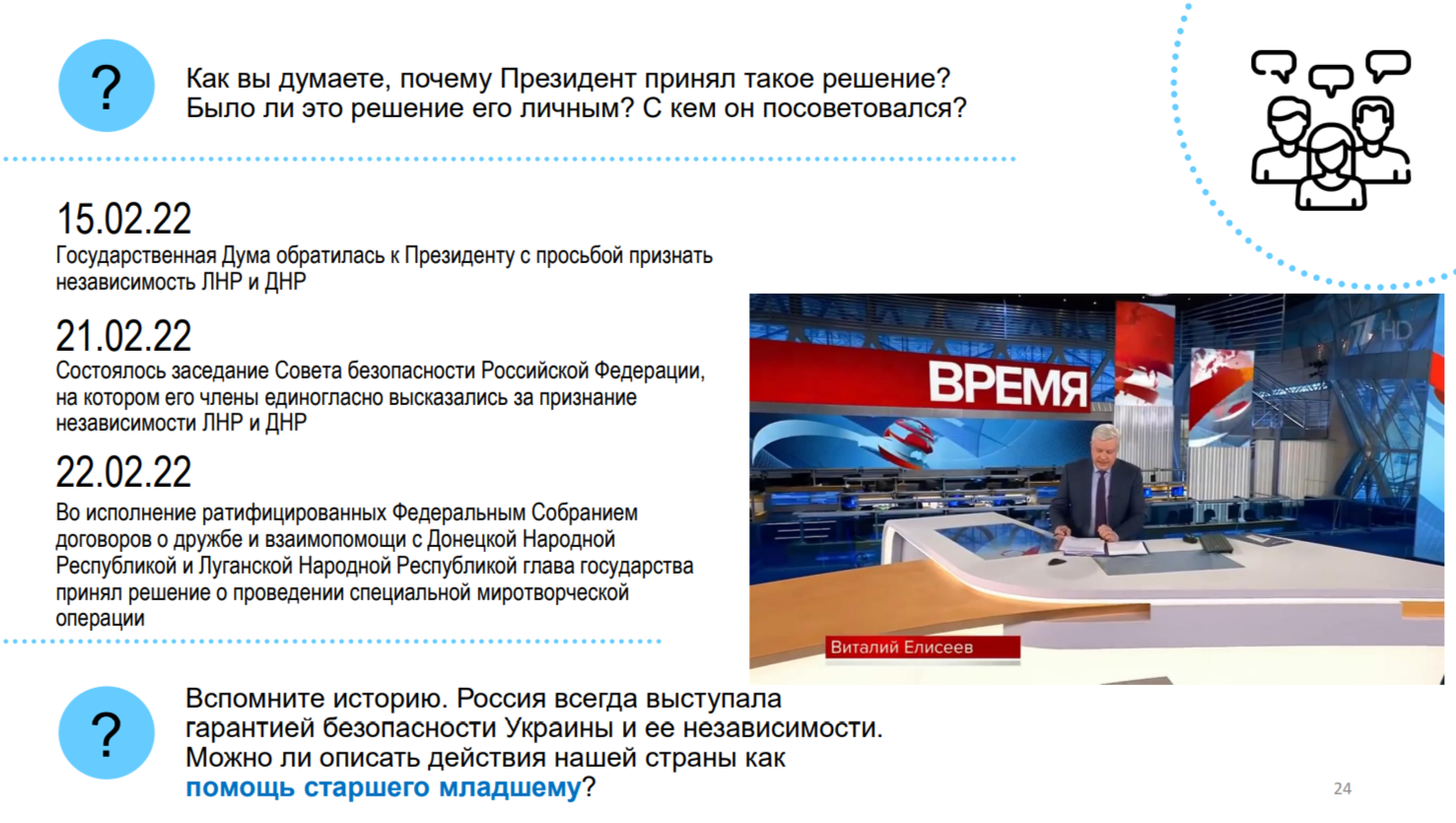 Еще школьники должны подумать, можно ли описать действия России в Украине «как помощь старшего младшему».