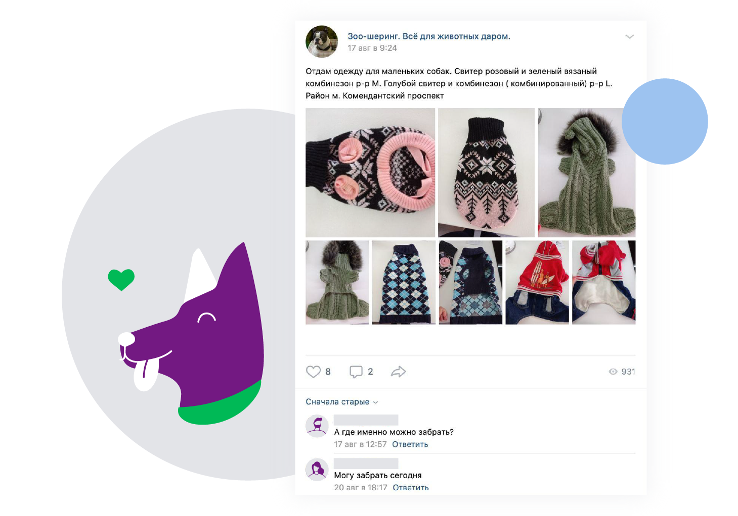 Вид шеринга, при котором люди делятся ненужными товарами для животных: ошейниками, переносками, лежанками, мисками, клетками, когтерезками. В Петербурге это можно сделать, написав в сообщество «Зоошеринг».