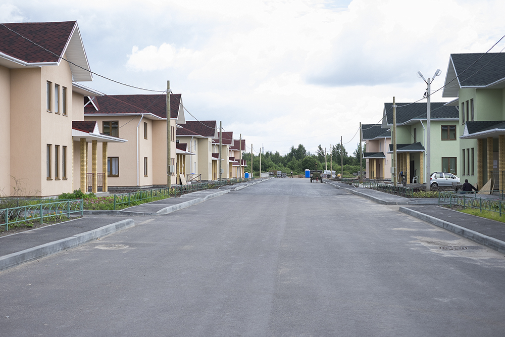 Между разноцветными двухэтажными коттеджами играют мальчишки — по виду им не больше десяти. Из-за домика выбегает один, красные резиновые сапожки в грязи. Поселок в Парголове совсем новый: кое-где территорию не успели привести в порядок.