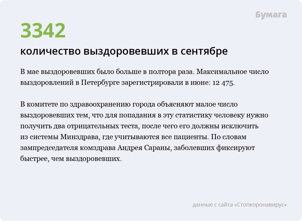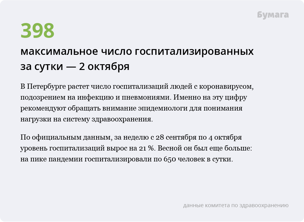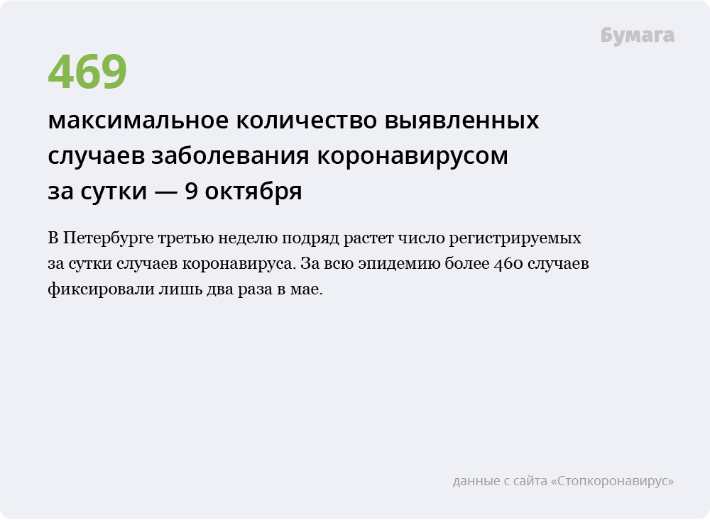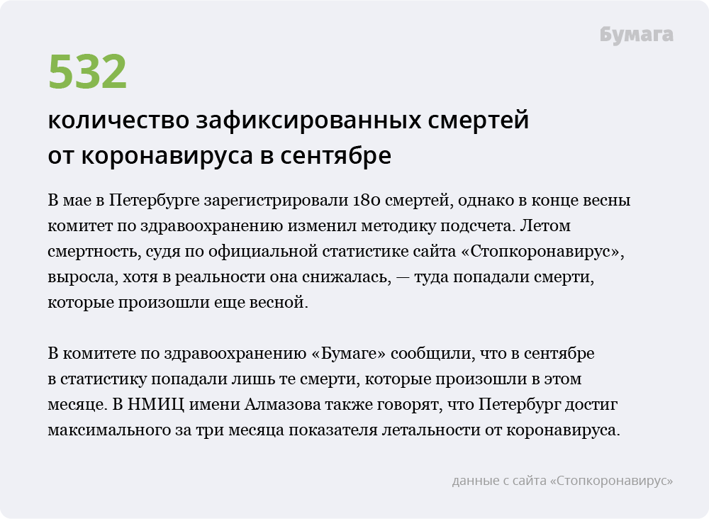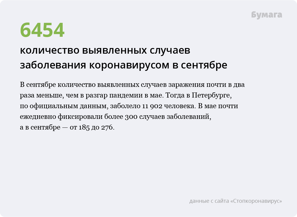 «Бумага» показывает главные цифры, позволяющие судить об эпидемиологической ситуации в городе, — и сравнивает их с весенними показателями.
