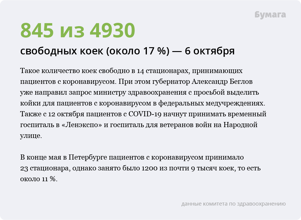 Заболевших коронавирусом так же много, как весной? А сколько коек осталось? Главные цифры о COVID-19 к осени в Петербурге
