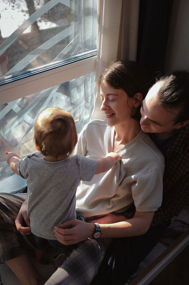 — Для нас было непонятно, что это вообще такое — быть в объективе. Мы постарались назначить начало съемки примерно тогда, когда обычно просыпался сын. Это сработало, и всё как-то произошло само собой. Наш фотограф просто пришла и начала снимать. Мы даже никак специально не оделись, у меня не было макияжа. Я подготовила сыну симпатичный костюмчик, но в итоге это оказалось вообще неважно — вместо того, чтобы его расстраивать лишними переодеваниями, мы просто погрузились в процесс.