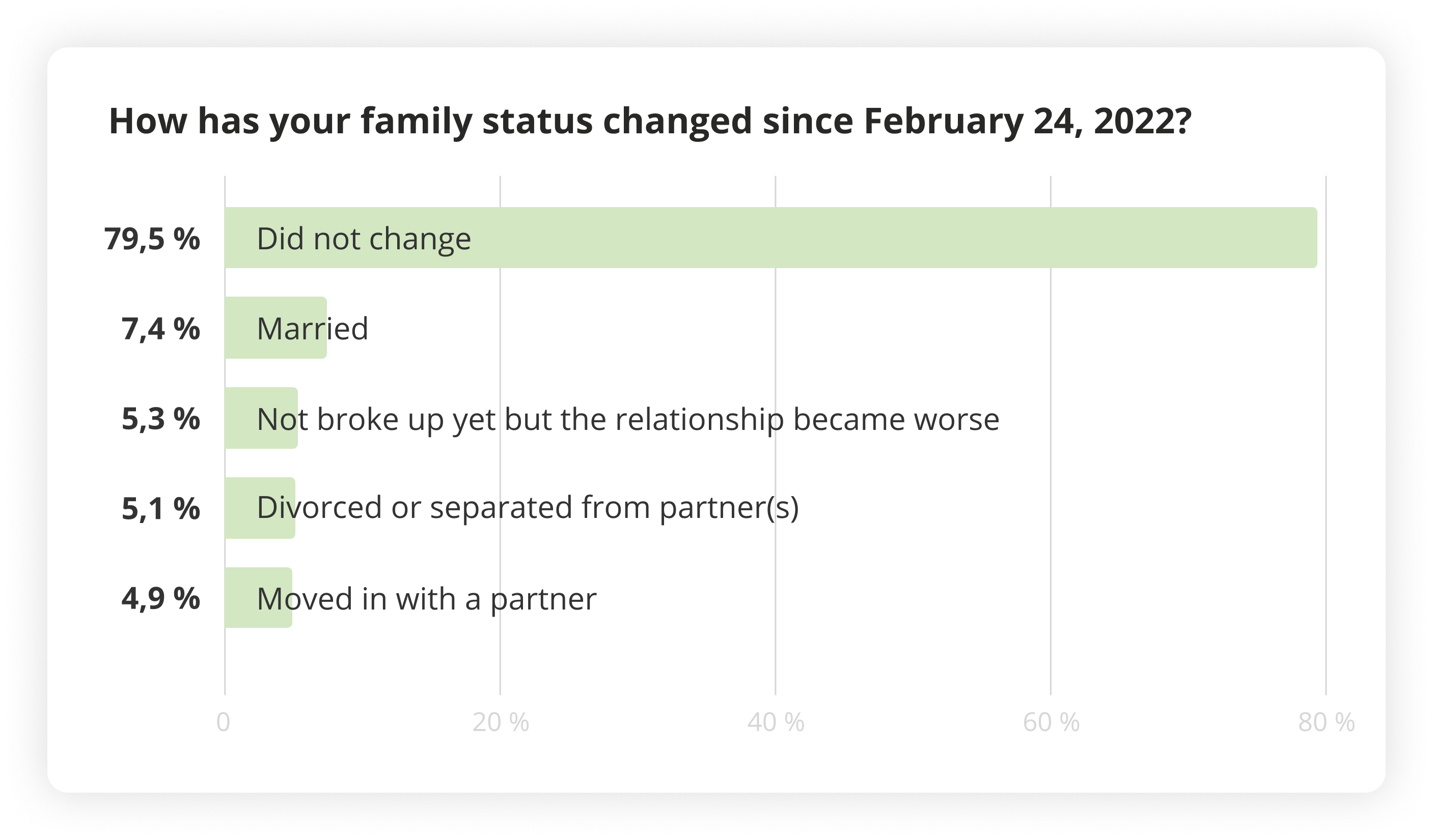 Conclusion: 16% of readers have postponed plans to have children. 10% of readers reported deteriorated relationships with their partners due to the war.