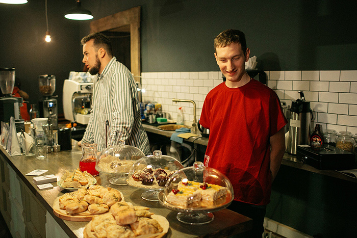 При этом ребята могут меняться в течение рабочего дня — первую половину дня варить кофе, а вторую — готовить. В будущем мы хотим увеличить количество особых людей, чтобы одновременно работали несколько человек, и за счет этого уменьшить нагрузку на людей с профессиональным образованием. Всего будет работать шесть человек, но до весны мы намерены увеличить количество вдвое.