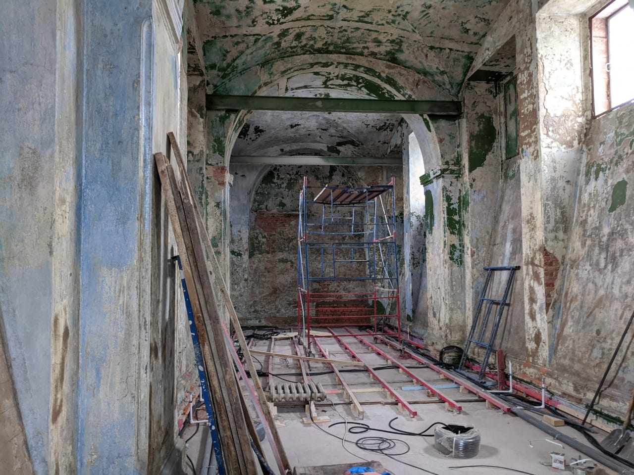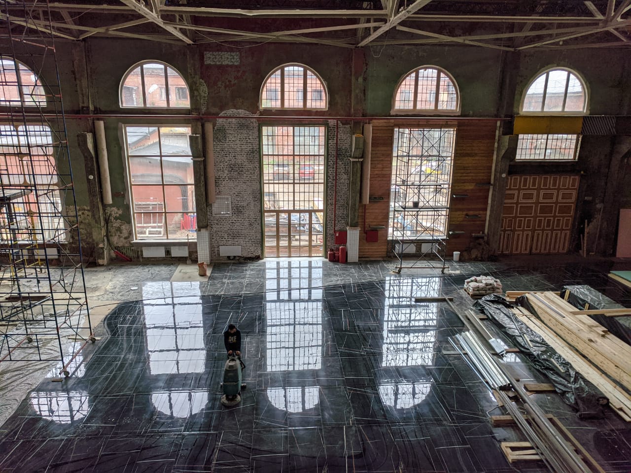 Отделочные работы в индустриальном здании XIX века продолжаются. Впрочем, к вечеру пятницы пространство будет готово к открытию — например, в помещение на верхнем этаже привезут работы Стаса Багса и других художников.