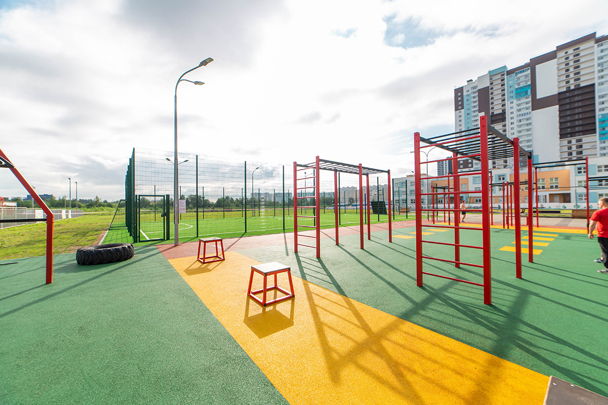 Чтобы начать заниматься спортом всей семьей, совсем не обязательно ходить в клубы и секции — подойдет и спортивная площадка в вашем дворе. Например, в жилом комплексе «Чистое небо» есть футбольное поле с современным газоном. Здесь можно заниматься и другими видами спорта, в том числе баскетболом и волейболом 🏀 А развивать силу и ловкость можно в workout-зоне, где расположены тумбы для прыжков, рукоход и другое оборудование для тренировок.