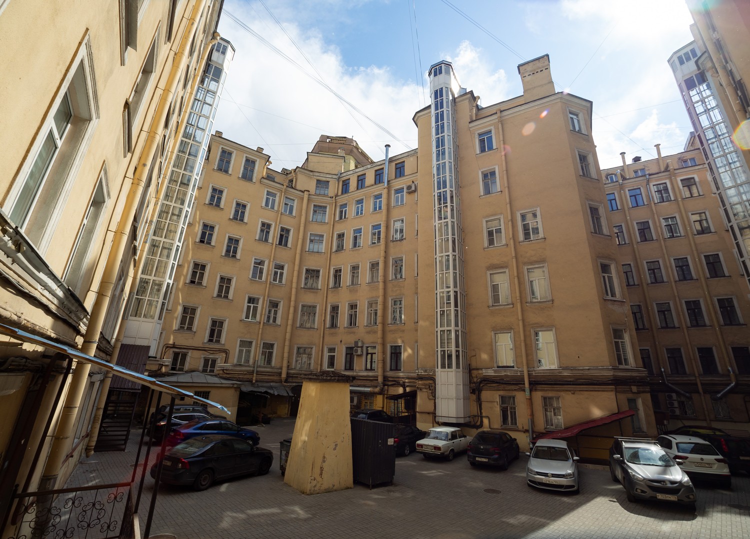 - Обратите внимание на монументальный желтый дом с классическим портиком по диагонали — на набережной Фонтанки, 120. Это дворец Алексея Гарновского, авантюриста эпохи Екатерины II, перестроенный сперва в казармы, а затем в жилой дом для военных и их потомков.