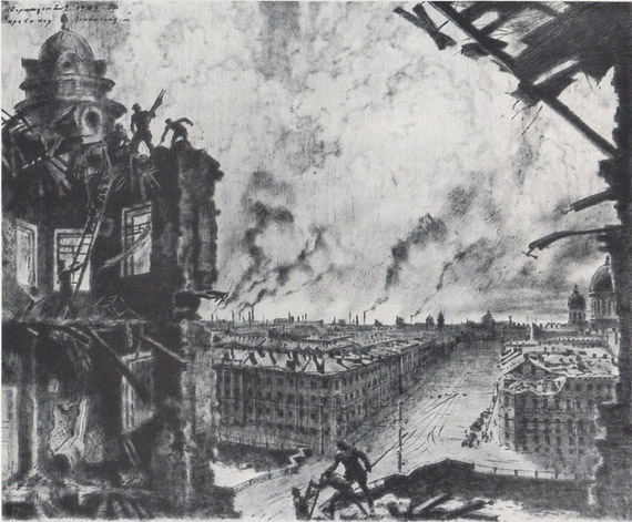 Полуразрушенный дом на Фонтанке стал источником вдохновения для сразу нескольких ленинградских художников. В том числе его изобразили художник и архитектор Александр Ротач и автор графической серии «Ленинград в блокаде» Николай Дормидонтов, который и сам жил в пострадавшем здании.
