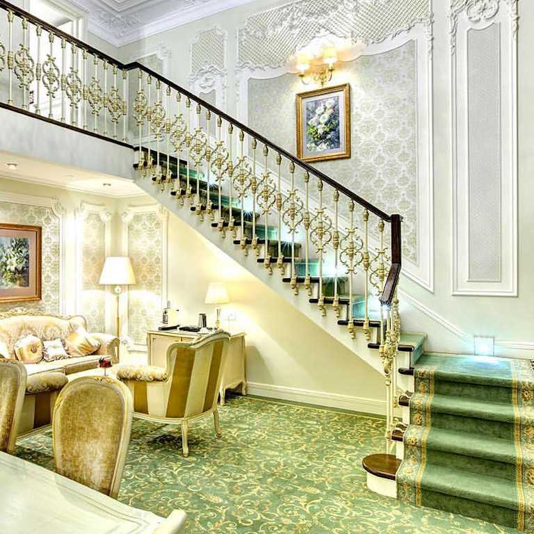 Пятизвездочный отель «Эрмитаж» — официальная гостиница Государственного Эрмитажа в Петербурге. Гостям предлагают погрузиться в атмосферу музея: в ресторане «Екатерина Великая» можно попробовать блюда из меню императорских резиденций, униформа швейцаров копирует костюмы царских дворецких, а мебель в номерах разработана по эскизам мастеров по дереву из Флоренции.