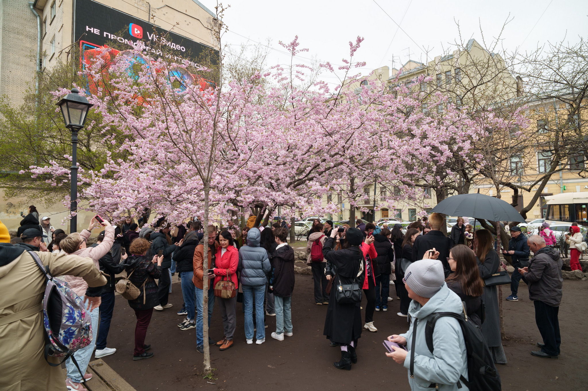 Цветет сакура не слишком долго (в среднем около недели с момента начала полного цветения), поэтому в самых популярных локациях с цветущей декортивной вишней собираются очереди из желающих понаблюдать за деревьями, сфотографироваться на их фоне и встретить весну.