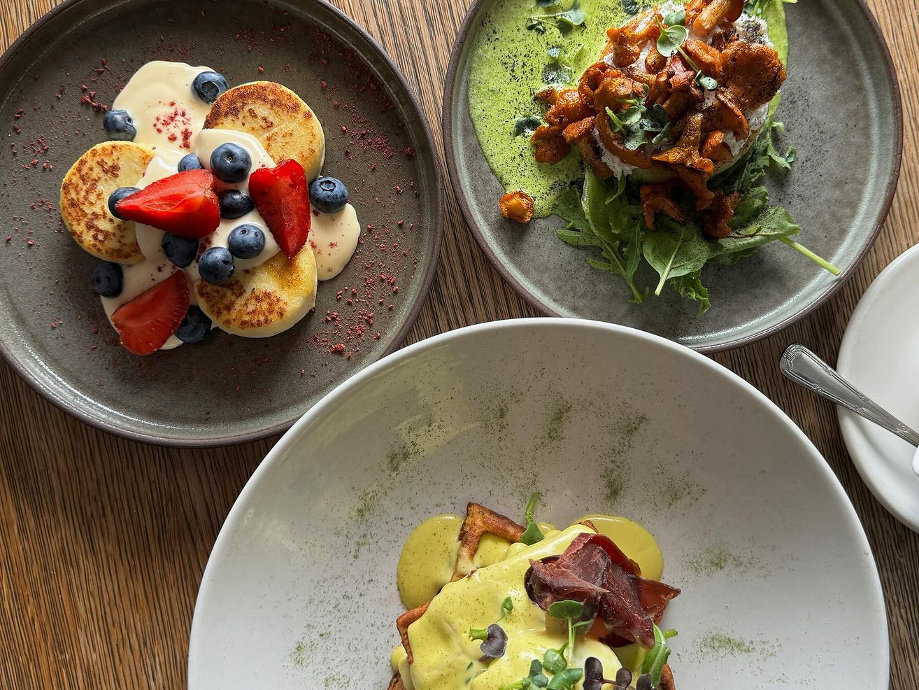 Шеф Алексей Алексеев работал в ресторанах Nordic и Recolte, а летом 2023 года переквалифицировался в ресторатора — заведение на Большой Зелениной стало его первым собственным проектом (весной этого года он запустил и второй ресторан — Inner). В утреннем меню Futurist почти два десятка позиций, в том числе завтрак-конструктор. Среди вариантов, на которые стоит обратить внимание, — киноа-кейк с камчатским крабом и страчателлой и драник из порея с печенью трески.