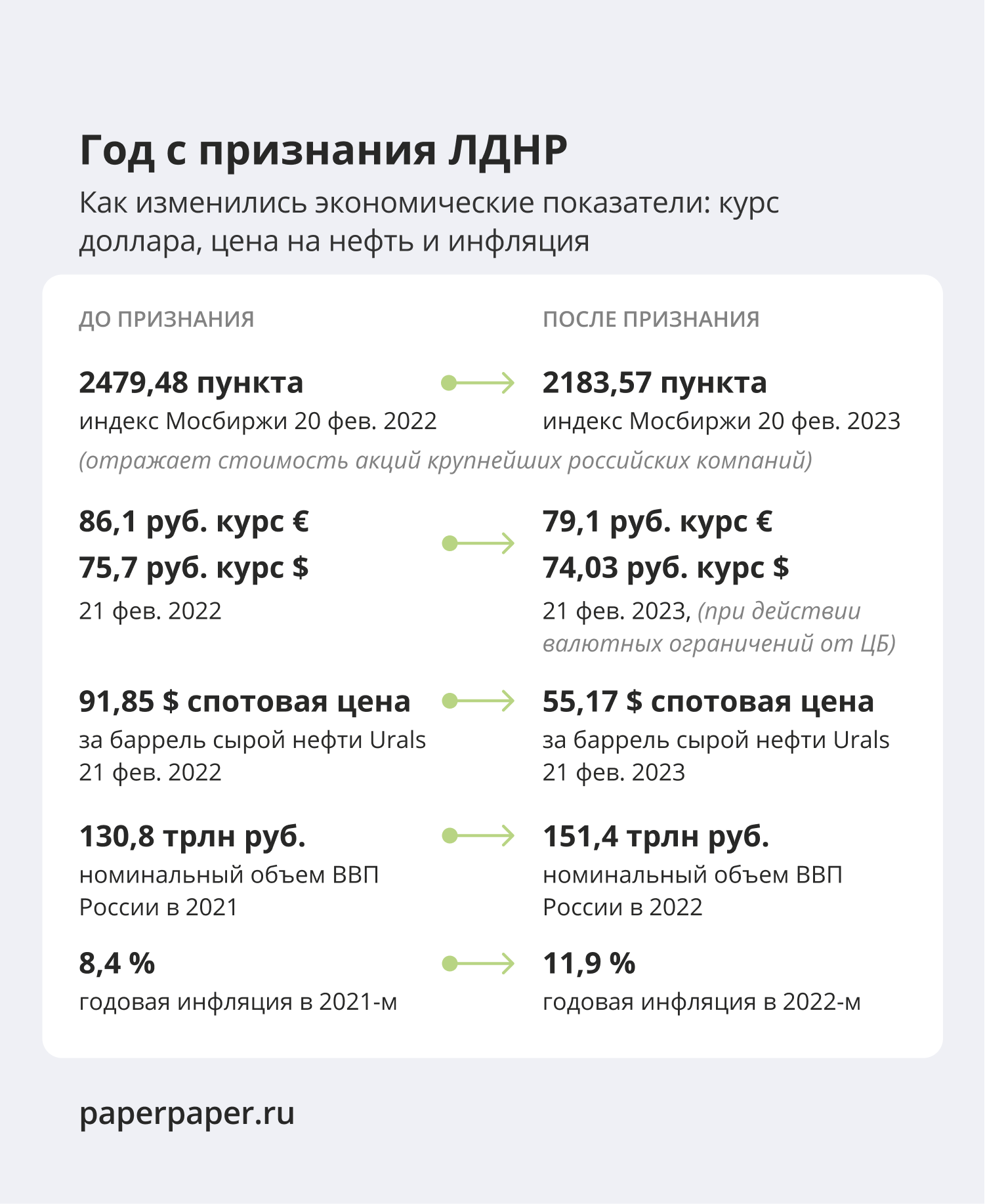 Год назад, 22 февраля 2022 года, Госдума ратифицировала договоры о дружбе с оккупированными ДНР и ЛНР — это стало последним рубежом перед началом полномасштабного вторжения России в Украину. Уже в тот день рынок отреагировал на действия властей РФ падением рубля и снижением цены на нефть.