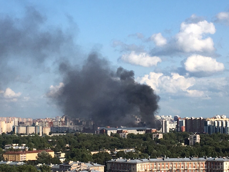 Сообщение о пожаре на Складской улице поступило в 14:10. Пожару присвоили самый высокий уровень сложности. На месте происшествия работали более 200 пожарных.