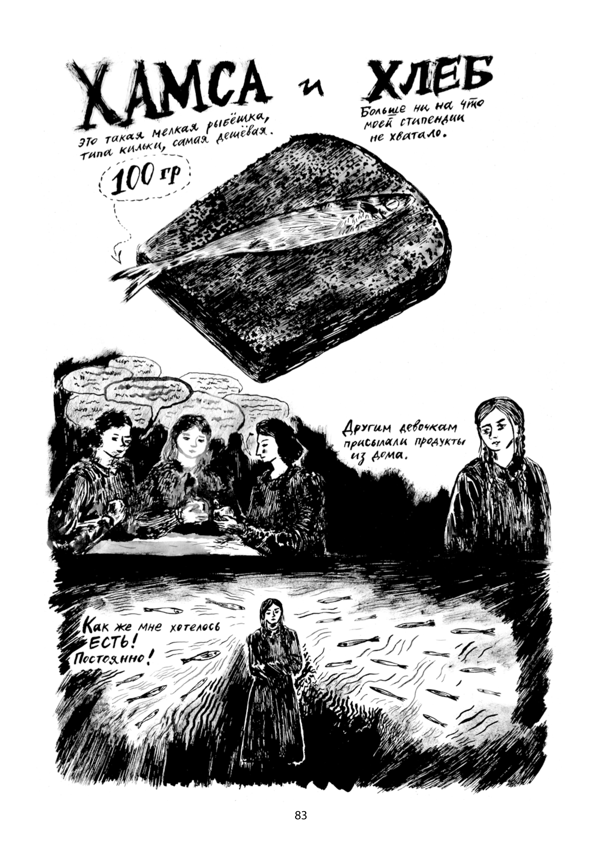 — Над каждым из четырех своих комиксов я работала по несколько лет (Ольга также автор книг «Процесс двенадцати» о суде над активистами «Другой России», «Непризнанное государство» о попытках создать микрогосударство в современном мире и детектива «Шув» о взрослении на фоне событий 90-х — прим. «Бумаги»). Долго обдумывала тему, постепенно собирала материалы. Работу я начинала с записей в блокноте и подборок картинок из интернета. Наверное, к четвертой книге у меня уже появилось достаточно опыта, чтобы взяться за такую большую тему.