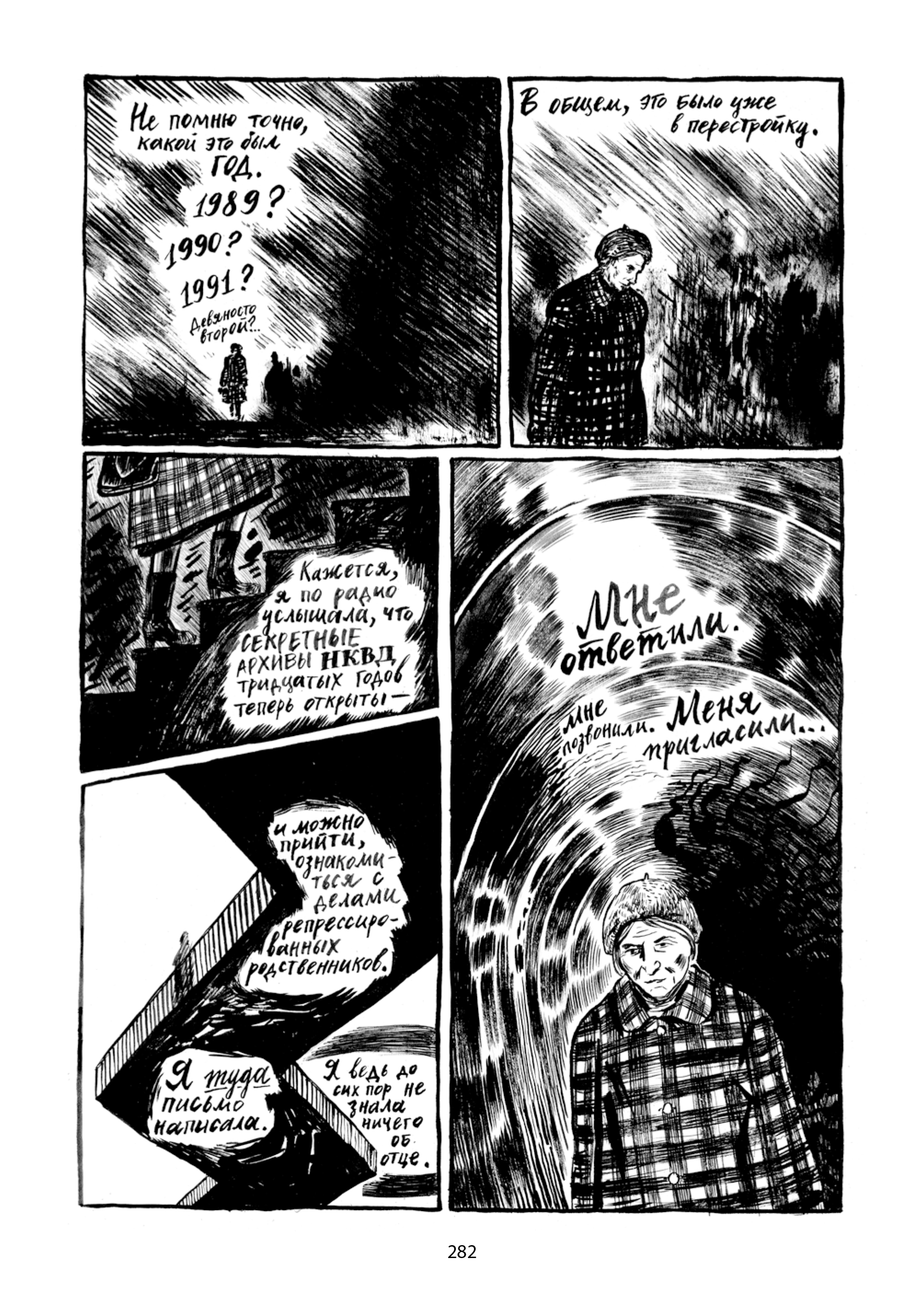 — В комиксе есть эпизод, где ваша бабушка, работая санитаркой, отдирает друг от друга замерзшие трупы, которые лежали зимой в сарае, — чтобы в одиночку увезти их, пока не потеплело. И при этом произносит фразу: «Что же ты так примерз, голубчик?» Как она вспоминает этот момент?