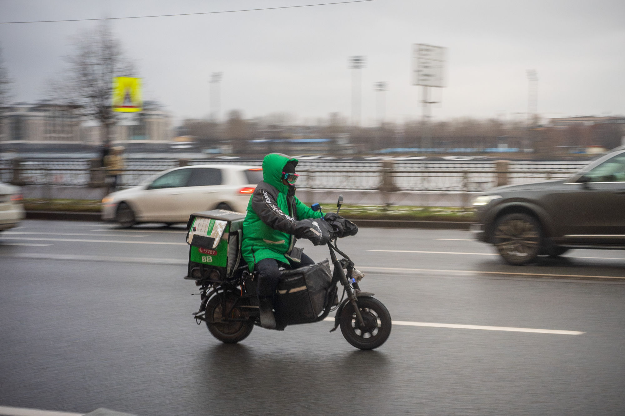 С 1 июля 2025-го курьерам на электровелосипедах и электросамокатах запретили ездить по некоторым центральным улицам. Например, теперь доставщикам нельзя передвигаться по Невскому проспекту, Садовой улице, Литейному и Каменоостровскому проспектам. Курьеры должны оставлять транспорт в разрешенной зоне, а дальше идти до ресторана или клиента пешком. Штрафы за перемещение не по тем улицам оплачивают сами курьеры, так как транспорт арендован на их имя.