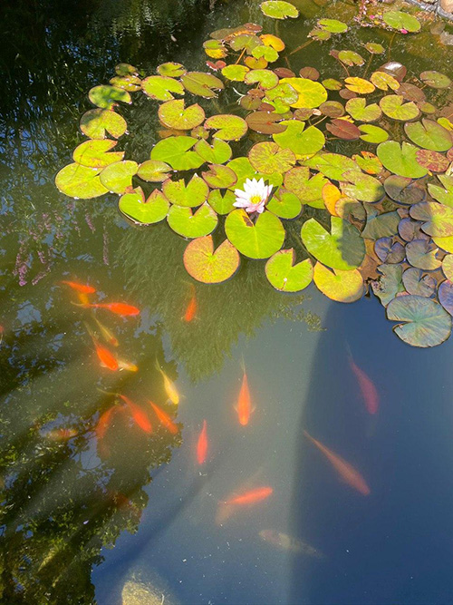 В 2013 году по предложению Юрия Борисовича я перетащила на территорию скорой всё свое «богатство» со школьного двора — так началось создание «Розового сада». Так как участок земли у скорой был больше, чем у школы, сразу захотелось сделать полноценный сад с большим количеством цветов и растений — и обязательно с прудом для рыбок.