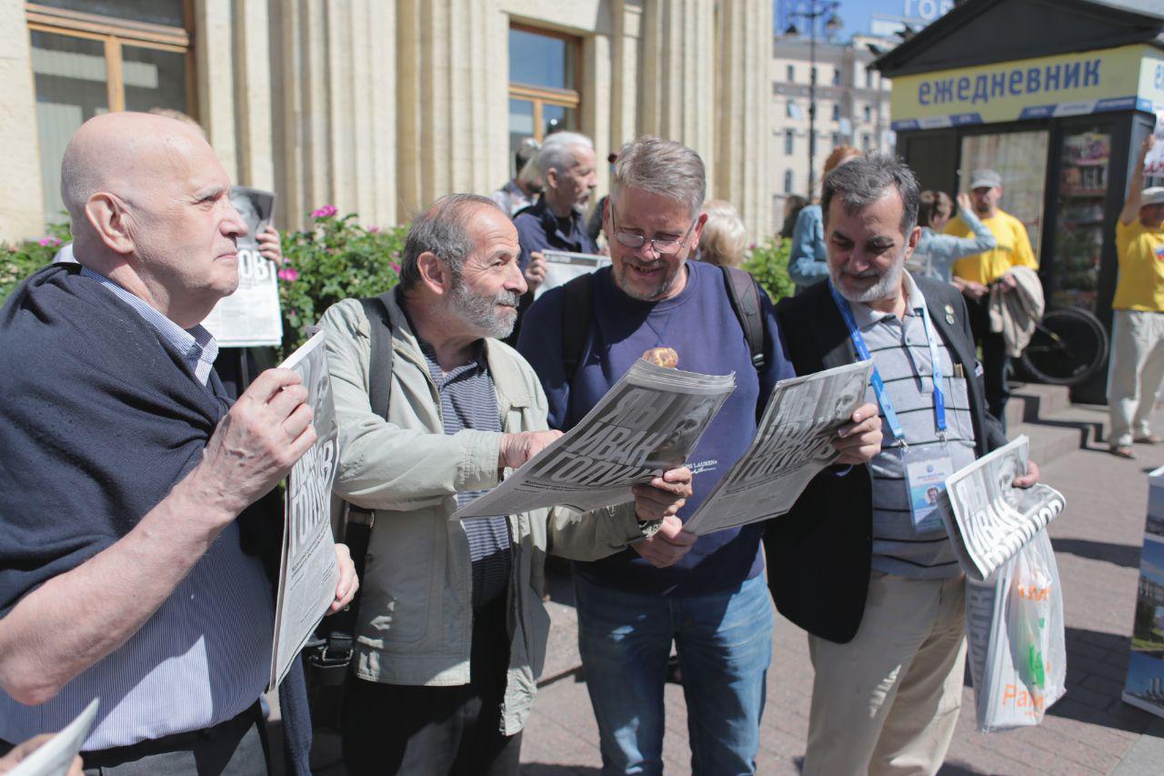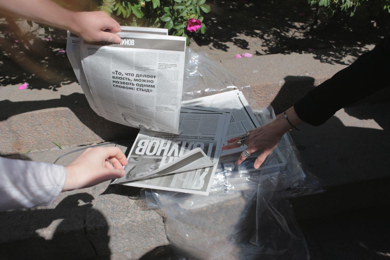 Участники петербургской акции стояли в одиночных пикетах и устроили флешмоб, выстроившись вдоль Невского с газетами «Я / Мы Иван Голунов». «Бумага» публикует 14 фотографий с акции.