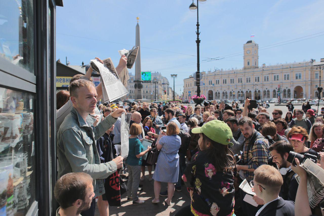 В День России в Петербурге прошла акция в поддержку журналиста Ивана Голунова и против сфабрикованных уголовных дел. На площади Восстания собралось около 100 человек, задержанных не было. На марше в Москве проходят жесткие задержания.